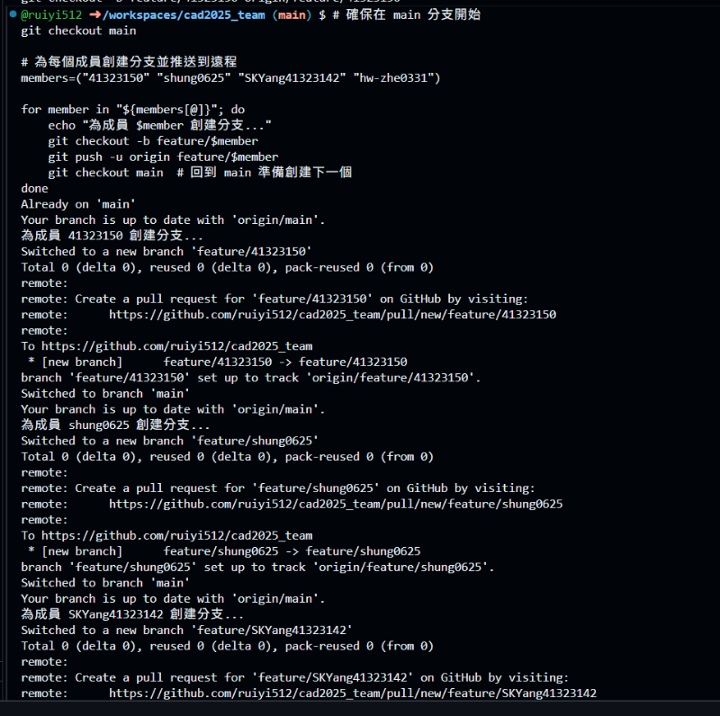 echo "設定成員 $member 的分支關聯..."