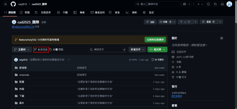 • 說明個人分支與主分支關係