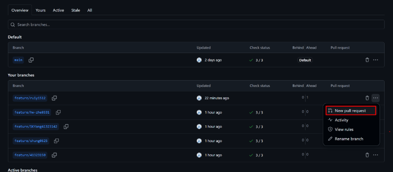 • Feature branch與main同步