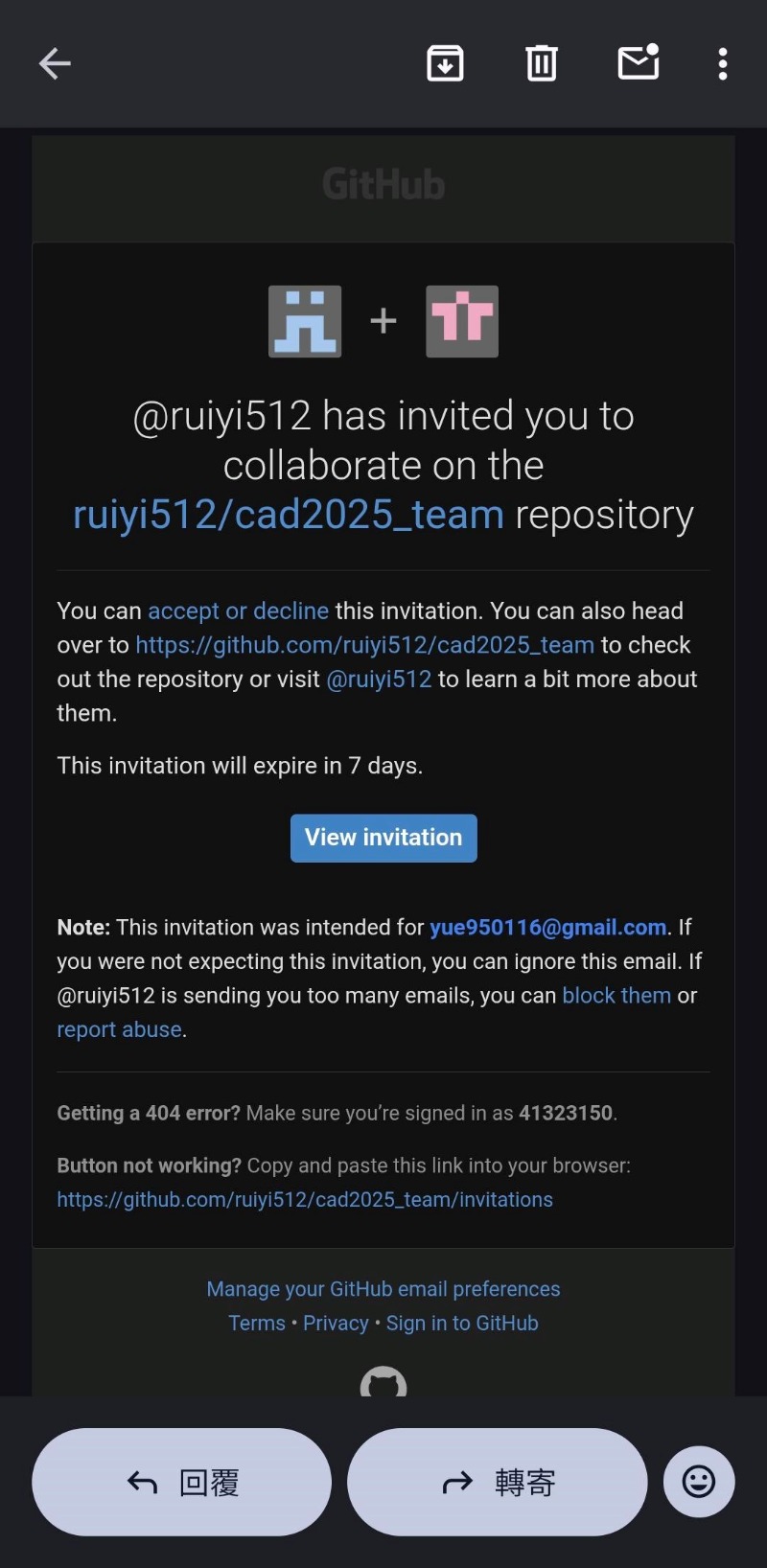 的電子郵件內接受邀請